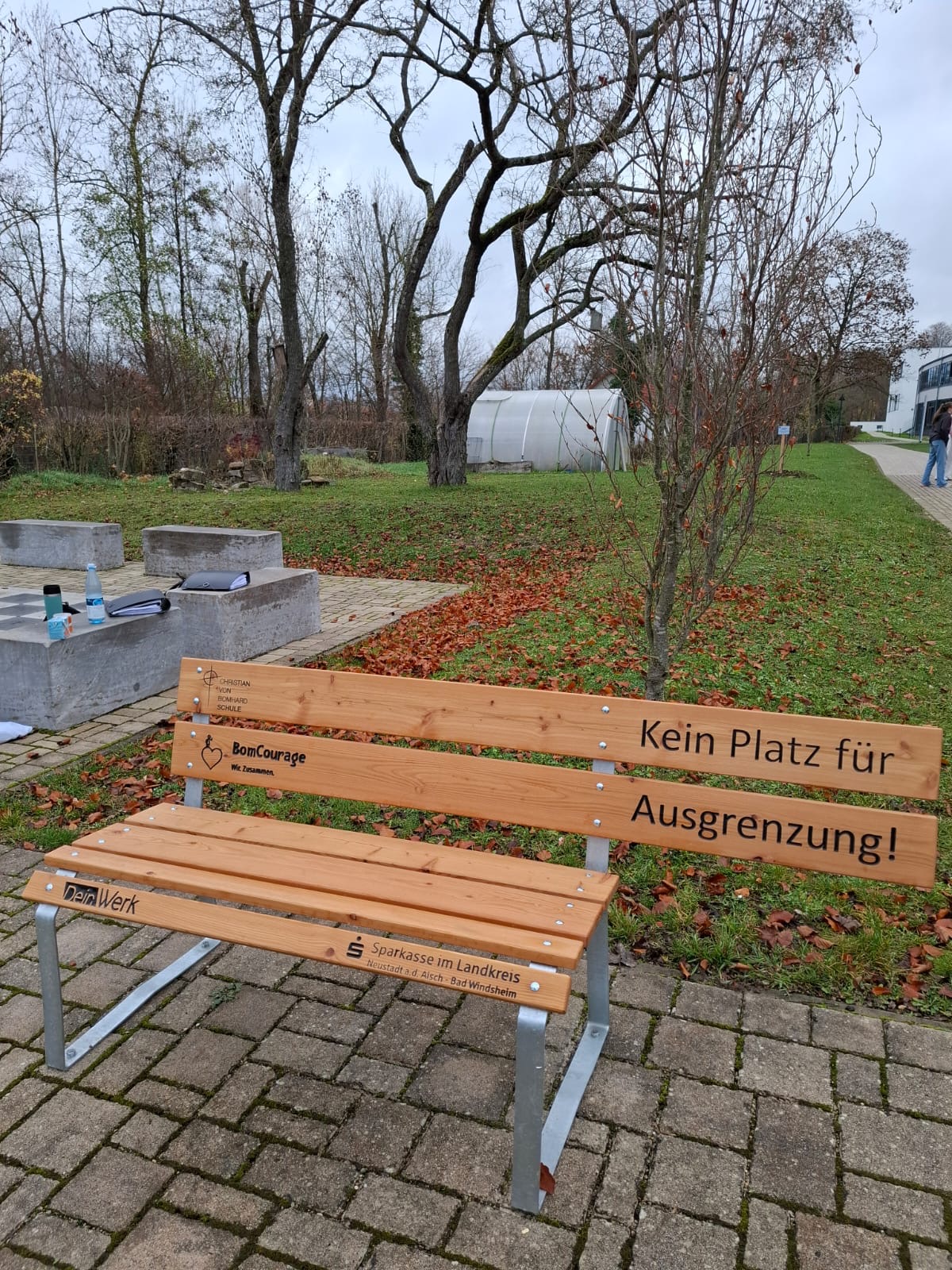 Ausgrenzung betrifft viele Menschen in unterschiedlichen Lebenslagen, sei es nun bedingt durch Krankheit, Behinderung, Armut, Religion oder Hautfarbe. Diese Formen der Diskriminierung sind leider in unserer Gesellschaft weit verbreitet und finden nicht nur am Rand dieser statt. Um ein sichtbares Zeichen gegen Ausgrenzung jeder Art zu setzen, hat die Christian-von-Bomhard-Schule jetzt eine „Bank gegen Ausgrenzung” in ihrem Pausenhof stehen. Schulleiter Philipp Specht erklärt, wie wichtig es ihm sei, sich für Integration und vor allem gegen Mobbing und Ausgrenzung an seiner Schule einzusetzen. Daher habe ihm diese Idee sofort sehr gut gefallen. Mit finanzieller Unterstützung der Sparkasse Uffenheim, vertreten in Person […] Artikel zu „“