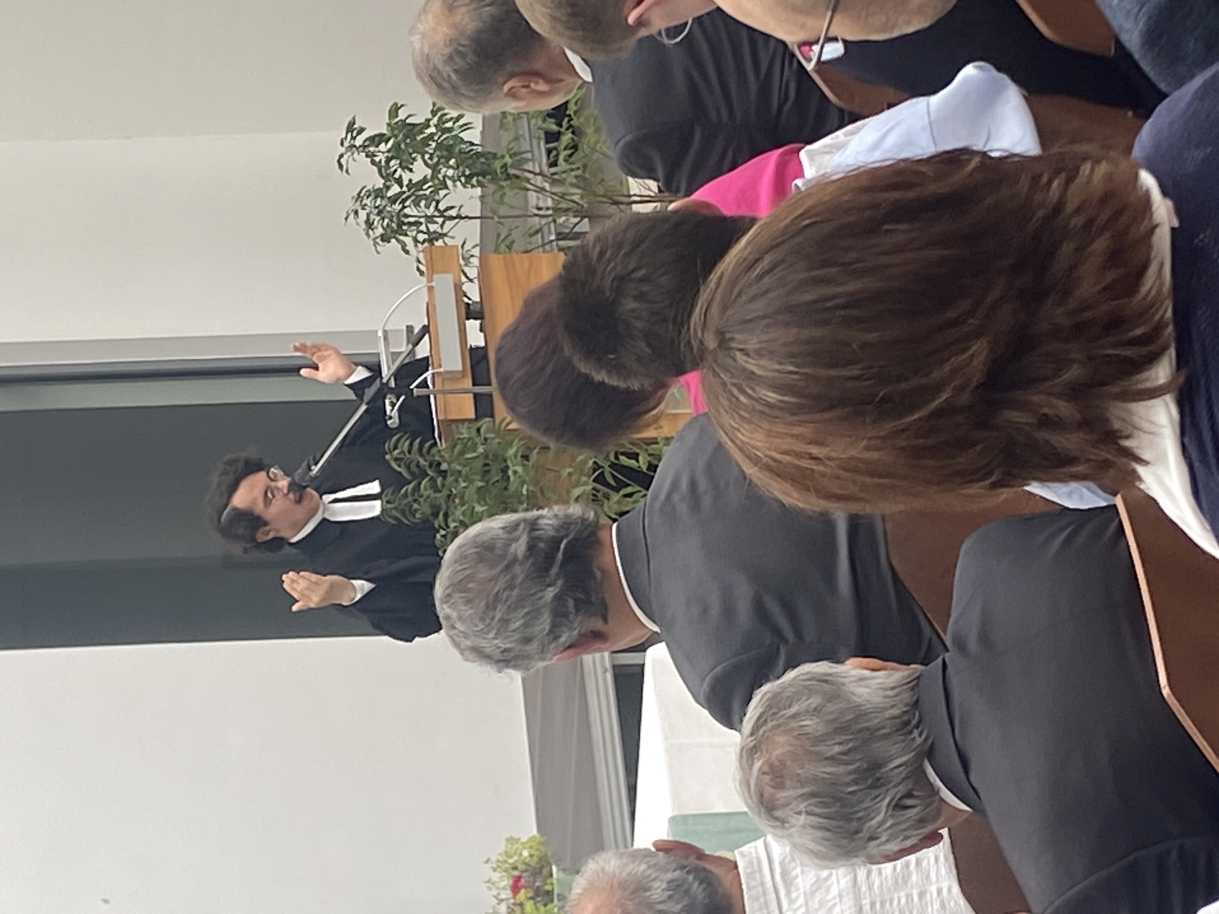 Die Big Band machte mit „Latin Fire“ den Anfang und „kündigte“ an, dass es nun offiziell losgeht im Atrium der C.-v.-B. Schule bei der diesjährigen Abiturfeier in Uffenheim. Zuvor hatten alle die Möglichkeit, sich in lockerer Runde beim Sektempfang schon etwas einzustimmen auf die kommende Veranstaltung. Mit der Andacht durch Pfarrer Marvin Knoke startete die Abschlussfeier. Gebete, Lieder und Fürbitten umrahmten die sehr tiefsinnige und kritische Analyse der Schulzeit der Jugendlichen und des aktuellen Zeitgeistes im Rahmen seiner Ansprache an die Anwesenden; dabei gab der Pfarrer den Entlassschülern mit: „Geht hinaus in die Welt und macht sie besser!“