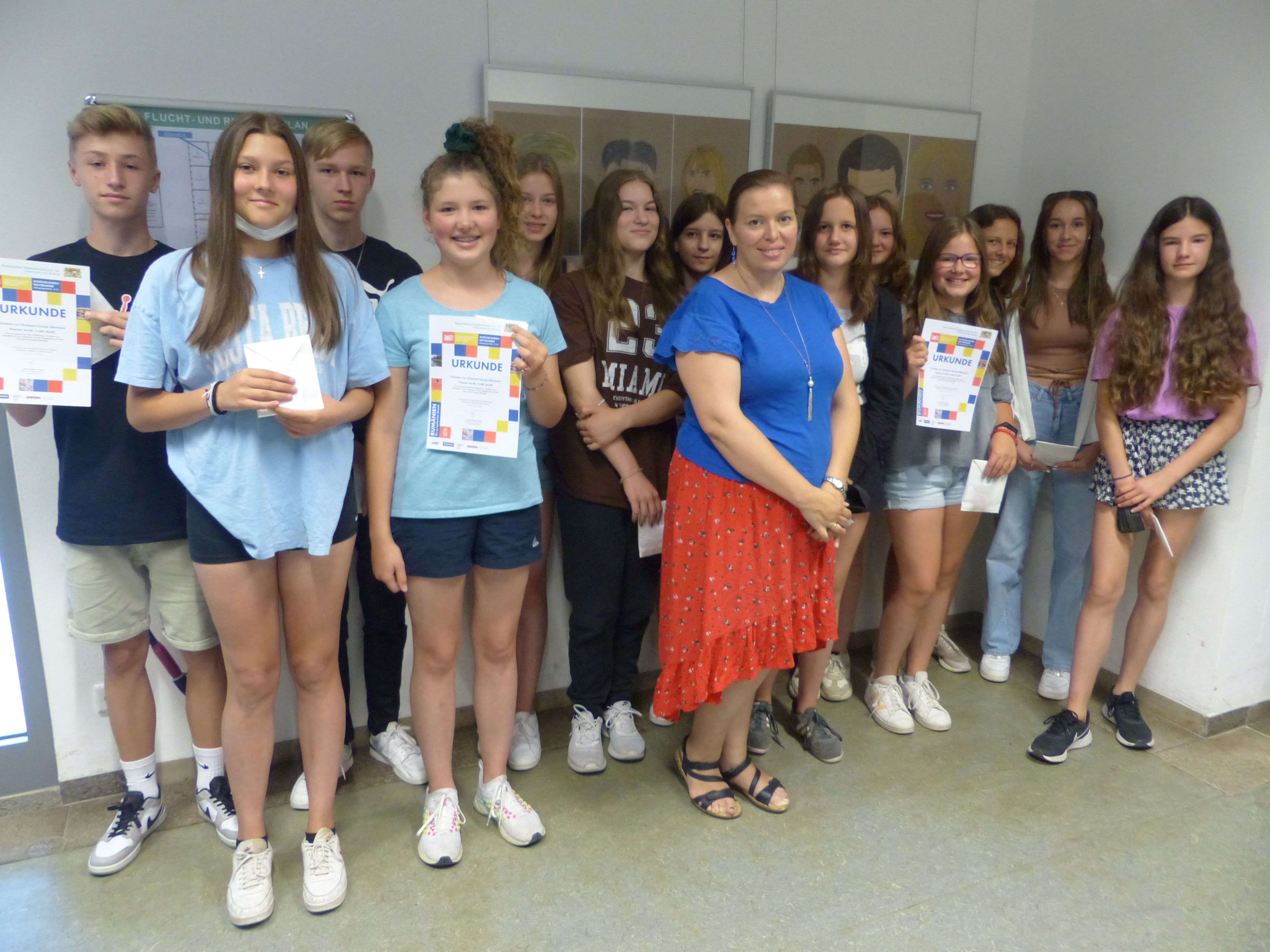 In diesem Schuljahr hat sich die Bomhardschule an einem Schülerwettbewerb mit dem Thema „Rumänien – Ein europäisches Mosaik“ beteiligt. Mehrere Jahrgangsstufen fertigten ganz unterschiedliche Arbeiten. Rumänien ist ein besonderes Land, über das die Schüler gar nicht viel wussten; dies bot viele Ansatzpunkte, um in der Kreativwerkstatt tätig zu werden. Dieses geheimnisvolle Land mit wilden Urwäldern, zerklüfteten Bergen, schwimmenden Inseln, Bärenreservaten und einer faszinierenden Tier- und Pflanzenwelt, hat auch kunsthandwerkliche Besonderheiten. In der fünften Jahrgangstufe wurde die Holzschnitzkunst von Maramureş aus Ton nachempfunden. Es wurden Collagen gestaltet, auf denen rumänische und deutsche Wörter zu sehen waren, die sich sehr ähnlich sind. […] Bilder unseres Kunstlehrers Oliver Christmann im Bundestag! 22.01.2022