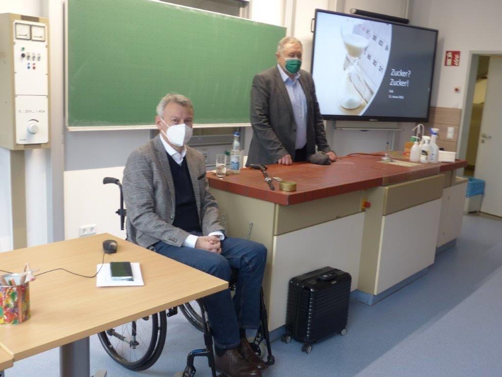 Daher freuten sich alle sehr, dass man den „Zuckerexperten“ kurzfristig für einen Vortrag zum Thema vor dem W-Seminar „Zucker“ gewinnen konnten. Das Seminar von Claus Markstädter beschäftigt sich mit technischen, wirtschaftlichen und gesundheitlichen Aspekten der Herstellung und des Konsums von Zucker. In seinem leidenschaftlichen Vortrag informierte Dr. Zeller die Schülerinnen und Schüler über die Geschichte der weltweiten Verbreitung des Zuckerrohrs und der Zuckerrübe in Deutschland und Europa. Dabei erwähnte er auch die unrühmliche Rolle, welche Zuckerrohr durch die Expansion der Anbauflächen von Westafrika nach Amerika bei der Ausbreitung der Sklaverei spielte. Darüber hinaus konnte er den Seminarteilnehmern die enorme wirtschaftliche und politische Dimension der Zuckerproduktion aufzeigen.