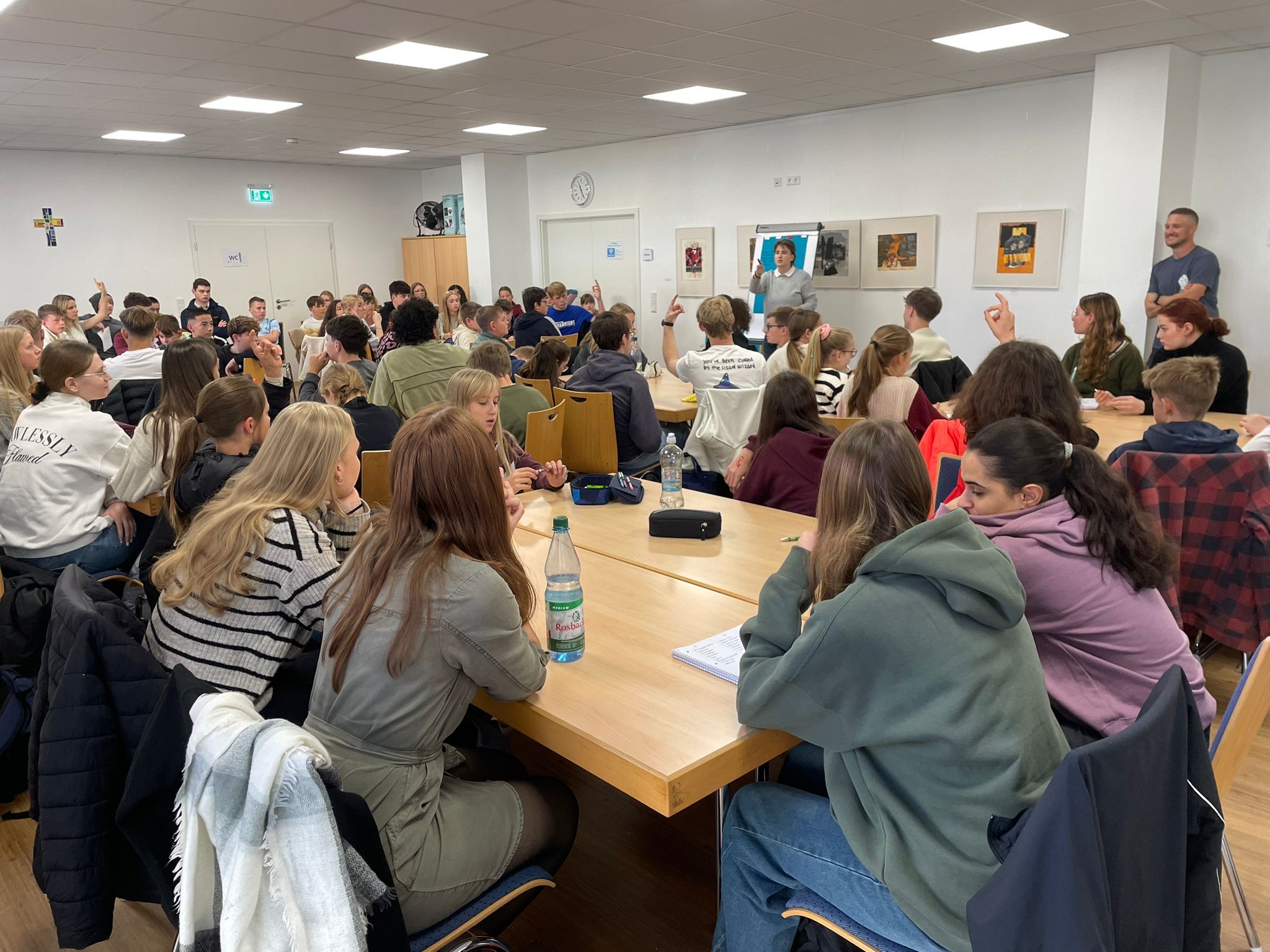 Am Donnerstag, den 02.10. trafen sich die gesamten Klassensprecher aus der Realschule, der FOS und des Gymnasiums zusammen mit ihren gewählten Vertrauenslehrern (Frau Klenk, Herr Hetzer, Herr Hofmann, Frau Hillmann und Herr Christmann) im Haus der Kirche, um sich auf das kommende Schuljahr und die Mitarbeit in der SMV vorzubereiten, insbesondere wurden noch die Schülersprecher gewählt.