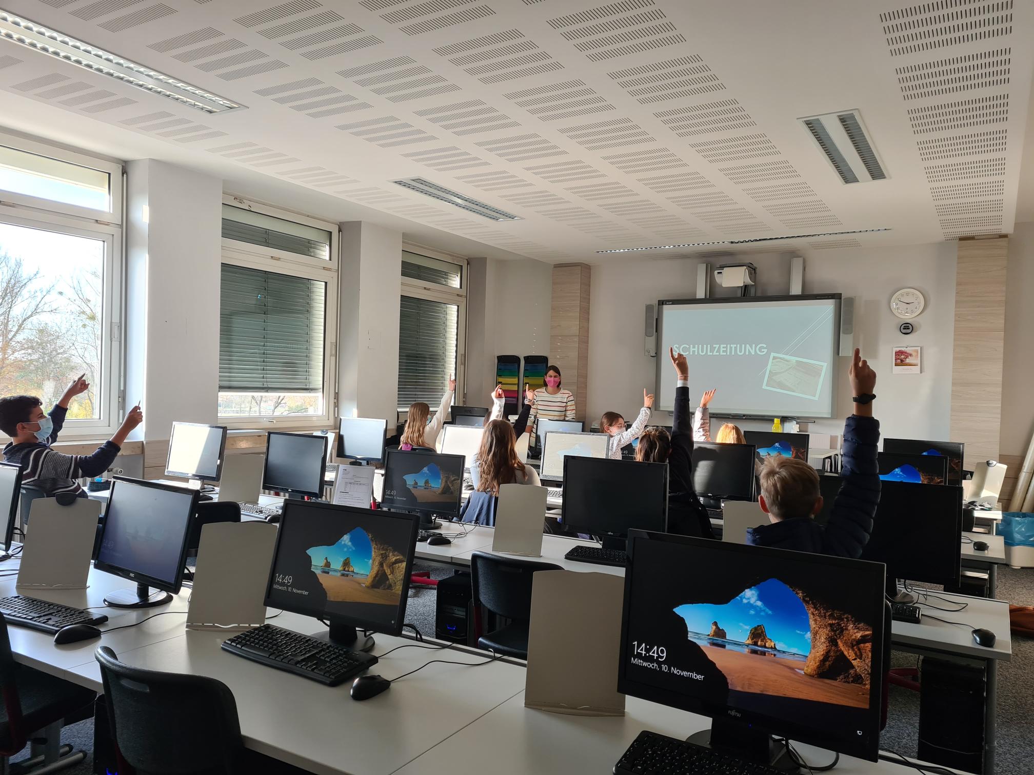 Die Mitglieder der Schülerzeitung bleiben extra länger in der Schule, um an ihren spannenden Artikeln zu schreiben. „Ich habe schon länger Interesse am Schreiben entwickelt und außerdem mag ich es, Dinge kreativ zu gestalten und am PC zu bearbeiten“, sagt Joshua aus der 8aR. „Mich trieb die Neugierde in die Schülerzeitung“, ergänzt Tatiana aus der 7cR, „und eventuell wäre dies ja ein späterer Berufswunsch, der sich daraus entwickelt.“