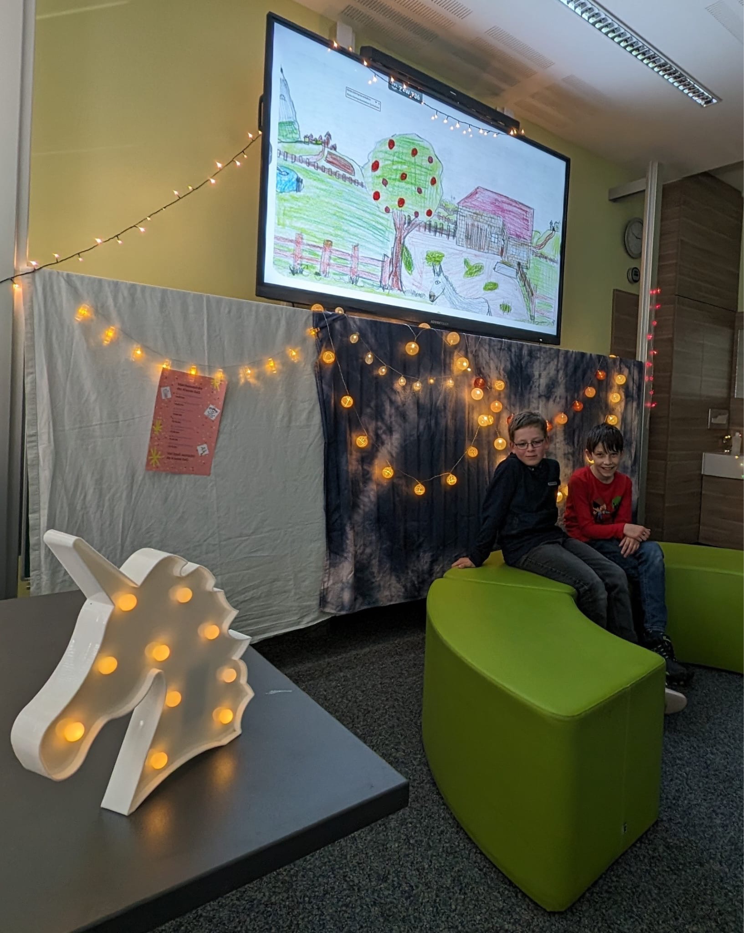 Auf dem Schulhof sorgte ein cooler Mountainbike-Parcours für sportliche Action und zog viele mutige Fahrer an. Hier konnte man sein Können unter Beweis stellen, wenn man im Slalom um Hütchen fuhr oder über eine Rampe sauste. Im Raum 116 war die Märchenstunde der Klasse 5aG ein Publikumsmagnet, bei der Jung und Alt in die Welt der Fantasie eintauchen konnten.